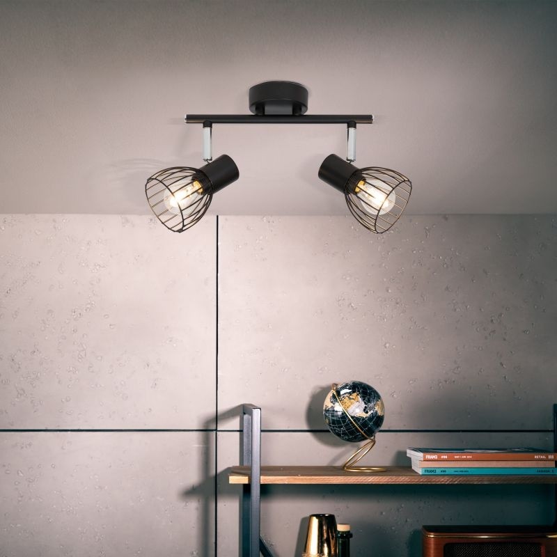 Celokovové světlo Brilliant ve stylu VINTAGE, 2x E14, černé, chromový detail, polohovatelné reflektory