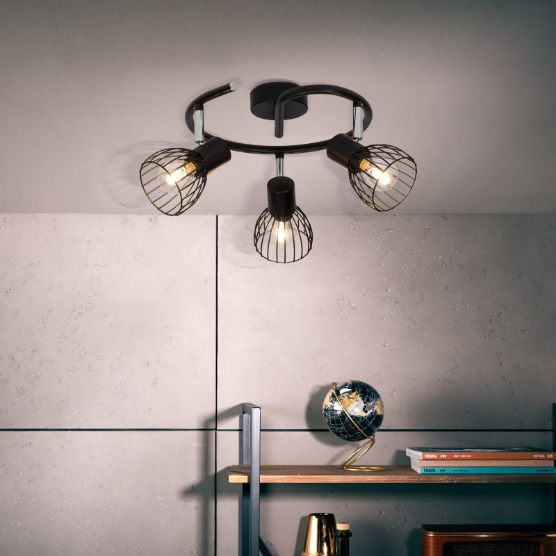 Celokovové kulaté světlo Brilliant ve stylu VINTAGE, 3x E14, černé, chromový detail, polohovatelné reflektory