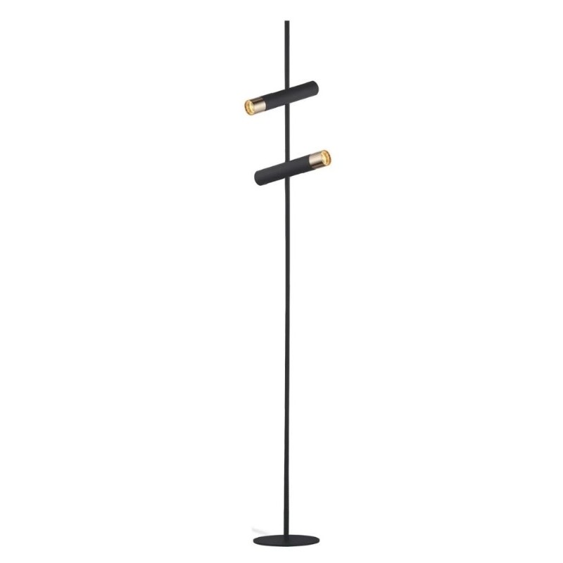 Stojanová lampa CYLINDER v atraktivním provedení představuje moderní doplňkové osvětlení pro Váš interiér. Celokovové svítidlo je vyrobeno v černé barvě v kombinaci s širokým zlatým lesklým lemem na konci reflektoru, který představuje výrazný prvek a dotváří unikátní design svítidla.