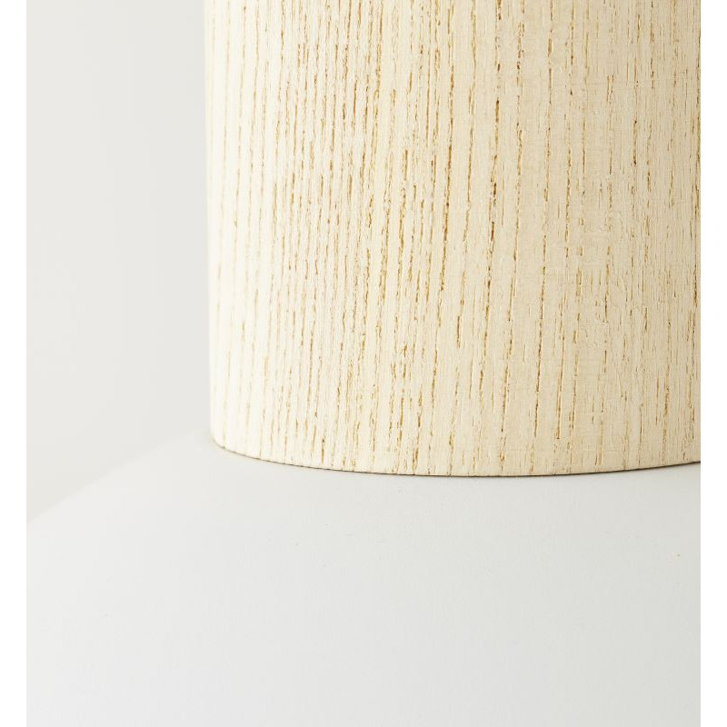 Kovové části jsou vyrobeny v matné bílé barvě a jsou doplněny detailem v přírodním odstínu světlého dřeva, který tvoří spojnici mezi kovovým stínedlem a textilním kabelem v bílé barvě. Závěsnou délku kabelu lze přizpůsobit vaší potřeby.