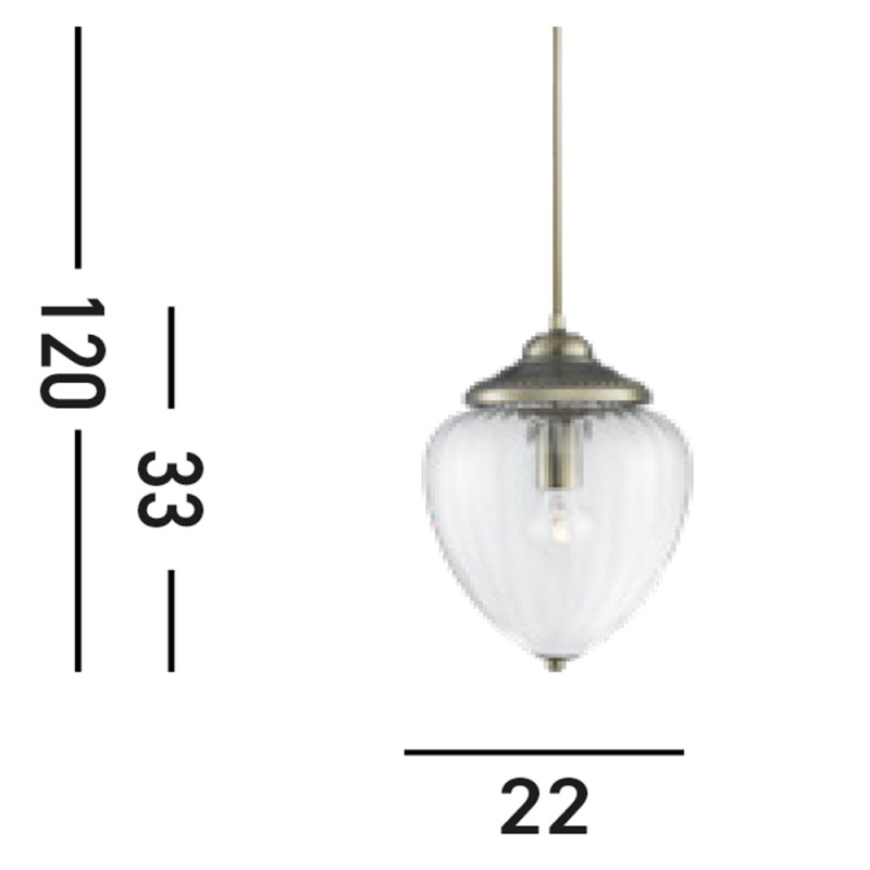 Světelné těleso o výšce 33cm je volně zavěšeno na kabelu, jehož celkovou závěsnou délku lze zkrátit dle potřeby. Čiré sklo stínidla propouští světlo žárovky uvnitř, která dotváří originální design tohoto klasického svítidla. Pro dokonalost vašeho nového osvětlení doporučujeme volit skleněné Filament LED žárovky s vláknem v teplém odstínu světla. Žárovky jsou viditelné a nic jiného tam jednoduše nepatří.
