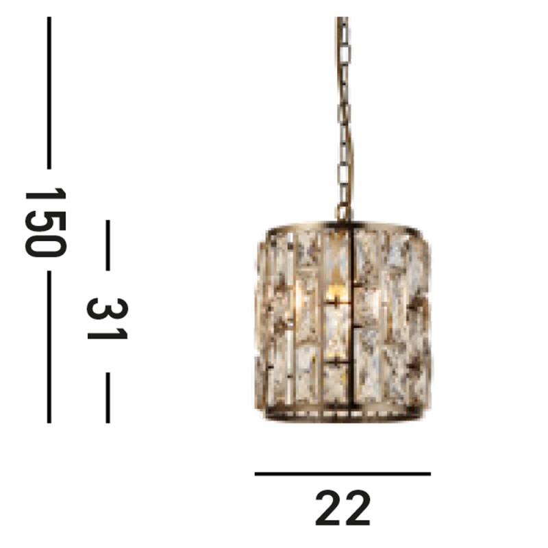 Designový závěsný lustr BIJOU zaujme svým originálním zpracováním z klasických materiálů, kdy je kov v luxusním provedení kombinován s čirým jemně tónovaným sklem. Stínidlo svítidla je tvořeno kovovou konstrukcí v barvě antická měď (patina) v kulatém tvaru o průměru 22cm a výšce 31cm. Výrazné stínidlo tvoří jemná ocelová konstrukce, která dělí stínidlo na jednotlivé kvadratické prvky, ve kterých jsou natěsno zavěšeny broušené ověsy třech velikostí. Originální barva skleněných ověsů v odstínu CHAMPAGNE dotváří celkový hřejivý dojem a jejich třpyt dodá svítidlu luxusní nádech.