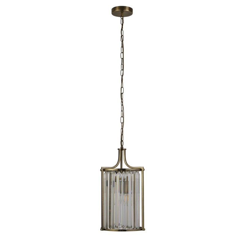 Jednoduchý závěsný lustr VICTORIA zaujme svým originálním zpracováním z klasických materiálů, kdy je kov v luxusním provedení kombinován s čirým jemně broušeným křišťálovým sklem. Stínidlo svítidla je tvořeno kovovou konstrukcí v barvě antická měď (patina) v kulatém tvaru o průměru 26cm a výšce 47cm. Štíhlé stínidlo tvoří jemná ocelová konstrukce, ve které jsou fixovány broušené ověsy ve tvaru trojhranu z čirého křišťálového skla. Luxusní kombinace křišťálových ověsů a patina dotváří celkový hřejivý dojem a třpyt křišťálů dodá svítidlu vyjímečný glamour nádech.