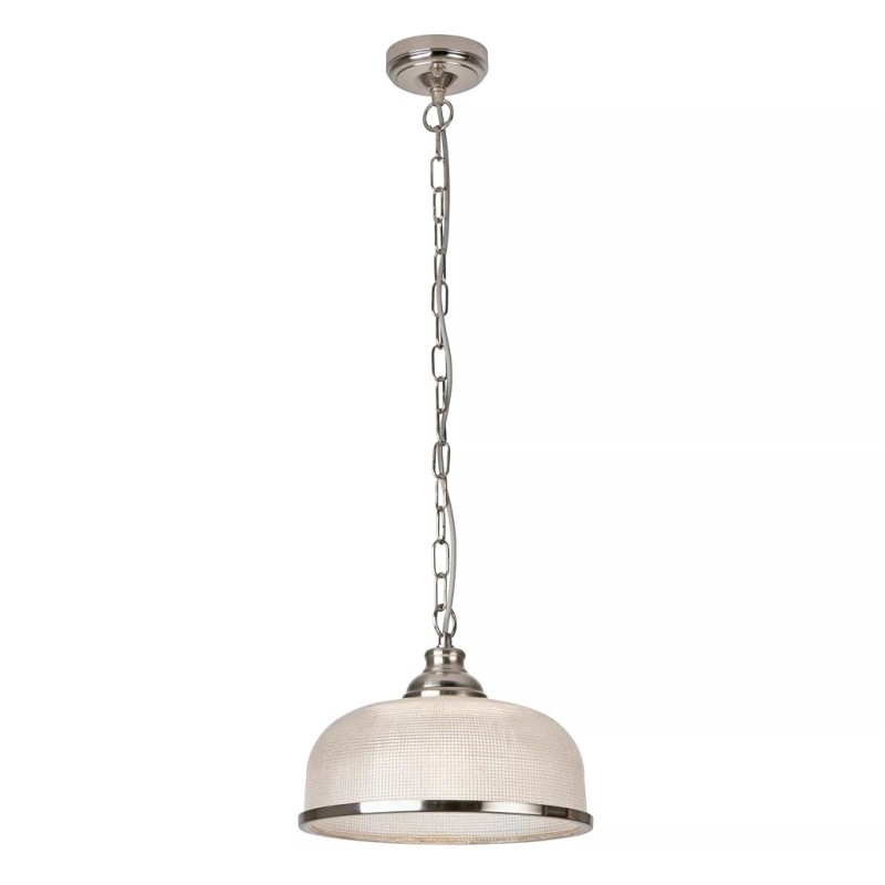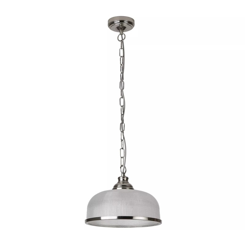 Jednoduché závěsné svítidlo BISTRO v klasickém a velmi stylovém designu je ideální volbou pro osvětlení moderního i klasicky zařízeného interieru. Tělo svítidla je vyrobeno z kovu s oblíbenou porvchovou úpravou satinovaný chrom. Výrazné stínidlo o průměru 27cm je sklěněné v provedení z atraktivního "holophan" skla v čirém provedení. Tato skla jsou vyráběna litím do formy a představují oblíbený VINTAGE prvek v industriálním období mezi roky 1890-1950. Čisté linie skel přispívají k originálnímu světelnému efektu.