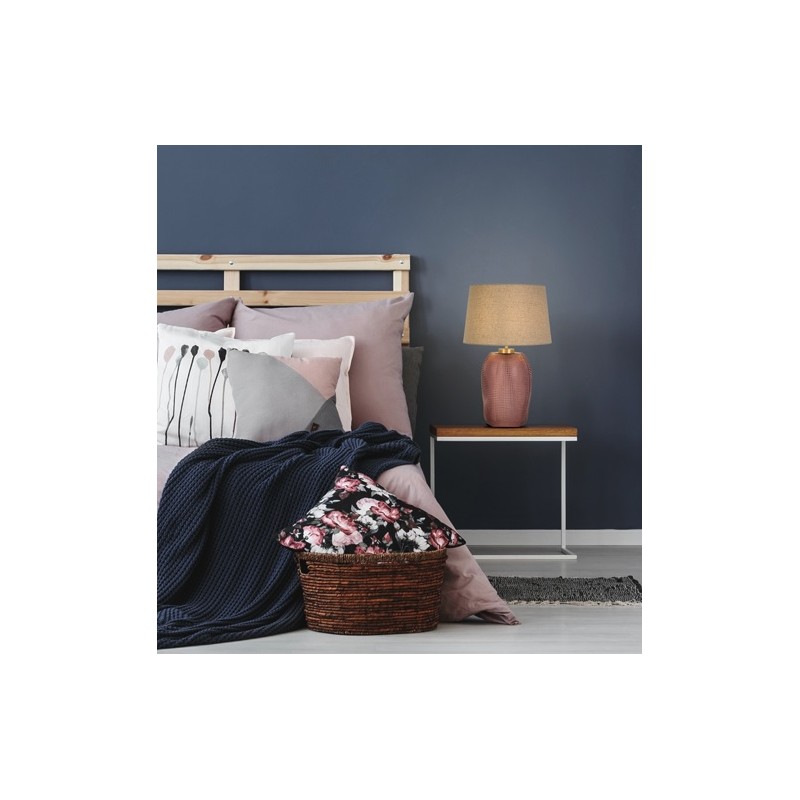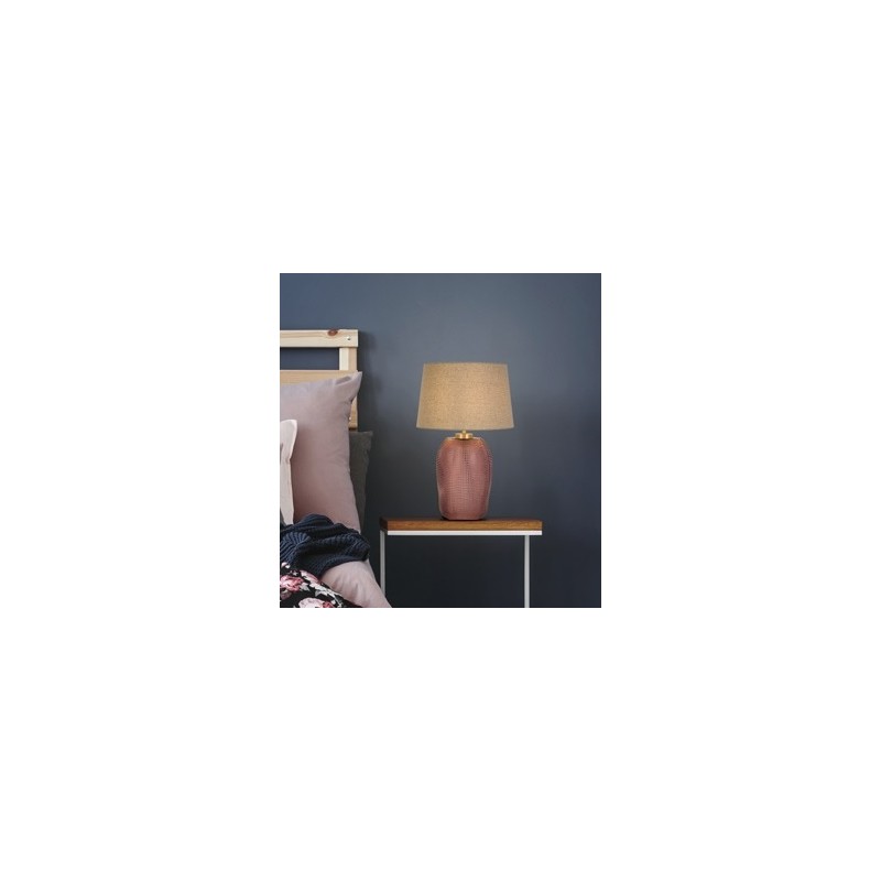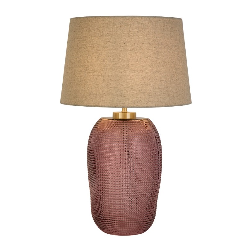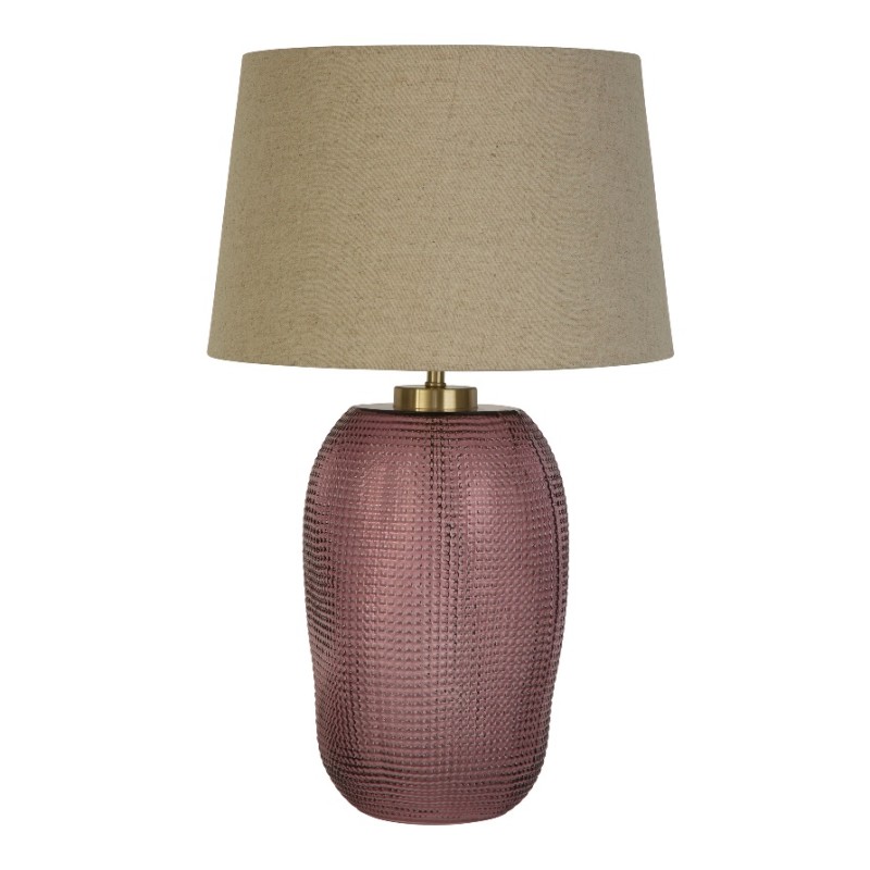 Velká stolní lampa AMETHYST růžové sklo & stínidlo NATURAL