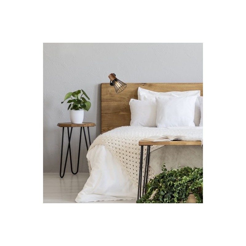 Celokovové stopní / nástěnné světlo Brilliant, styl VINTAGE, 2x E14, matná černá + imitace dřeva