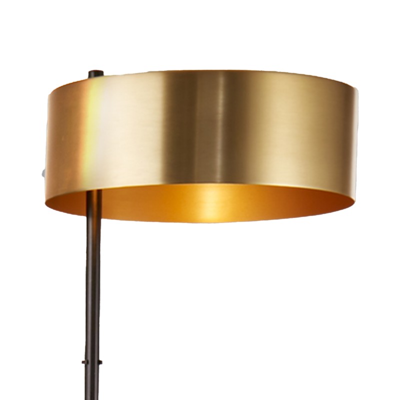 Stojanová lampa KNOX v atraktivním provedení představuje moderní doplňkové osvětlení pro Váš interiér. Celokovové svítidlo je vyrobeno v oblíbené černé barvě v kombinaci s výrazným kulatým stínidlem v matné zlaté barvě. Celokovové stínidlo vytvoří příjemný směrový zdroj světla, který svítí jedním směrem, a to dolů. Lampa je tak ideální volbou pro osvětlení při práci či četbě, zcela jistě poslouží i jako výrazný designový prvek v interiéru, volně postavená vedle sedací soustavy nebo obývákové stěny.