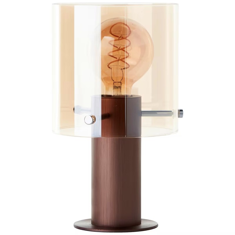 Moderní stolní lampa PETJE zaujme svým luxusním provedením, kterému dominují oblé tvary a skleněné stínidlo o průměru 15cm v atraktivním jantarovém odstínu.