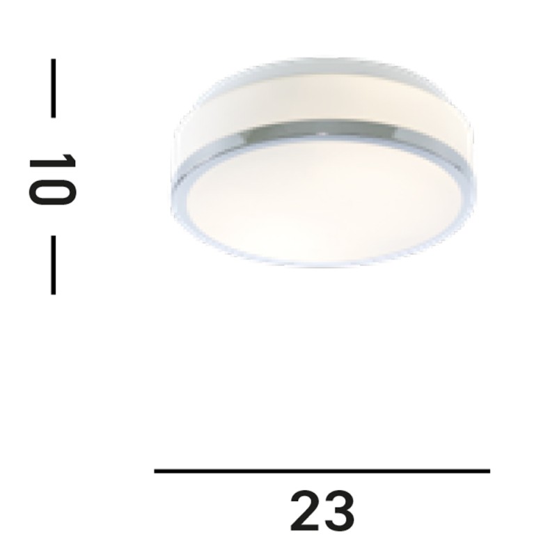 Stropní přisazené svítidlo do koupelny, 2x E27, opálové sklo, lem satinovaný chrom, průměr 23cm