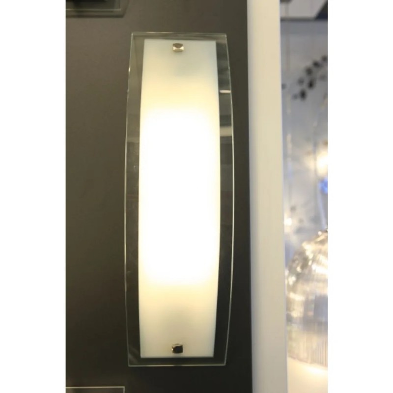 Moderní prohnuté sklo je satinované, na okrajích čiré. Svítidlo je vybaveno integrovaným vypínačem z boku svítidla.