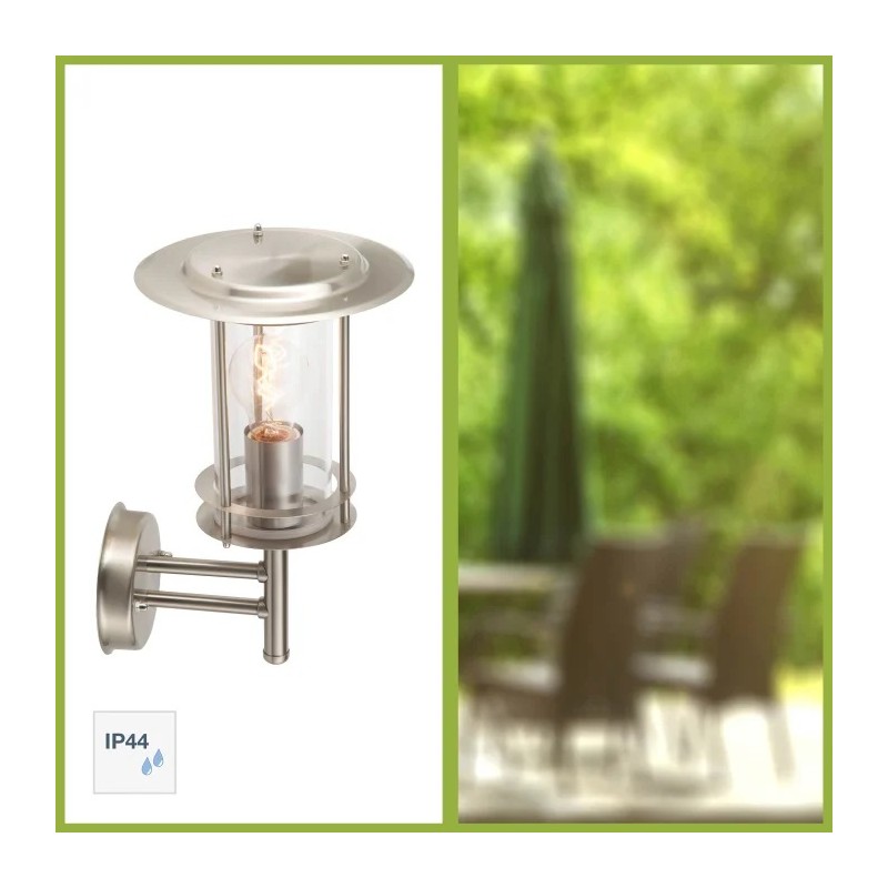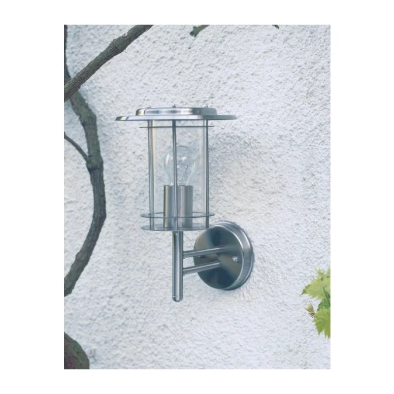 Venkovní nástěnné svítidlo Brilliant, IP23, ušlechtilá ocel, IR senzor, 1x E27, akrylové sklo