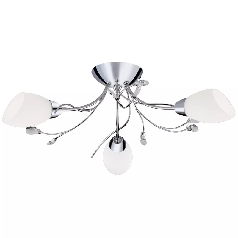 Stropní tříramenny lustr GARDENIA chrom & opálové sklo