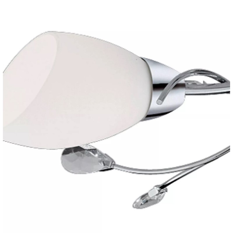 Stropní přisazený lustr GARDENIA dokonale rozzáří klasicky i moderně zařízený interiér. Svítidlo je vyrobeno z oceli v tradičním zpracování kovových částí v lesklém chromu. Tělo lustru je tvořeno 3-mi jemně prohlými rameny na kulaté stropní rozetě na jejichž konci jsou fixována stínidla z bílého opálového skla v klasickém kuželovitém tvaru. Základní ramena jsou doplněna o jemnější prohnutá ramínka na jejichž konci jsou křišťálová jemně broušená skla ve tvaru kapky.