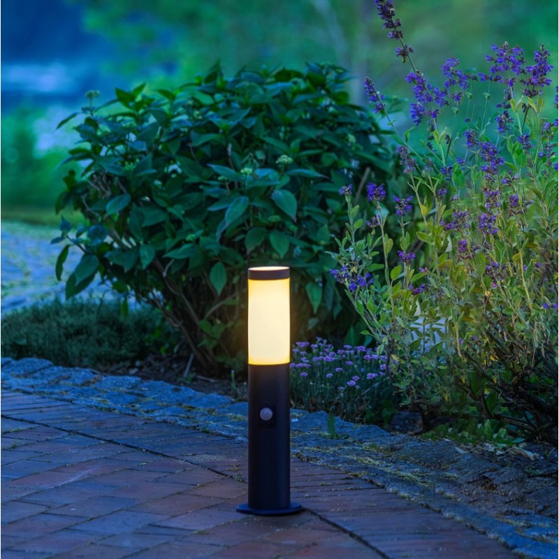Moderní exteriérový vysoký sloupek Brilliant, IP44, 1x E27, pohybové čidlo 90°, kov, tvrzený plast