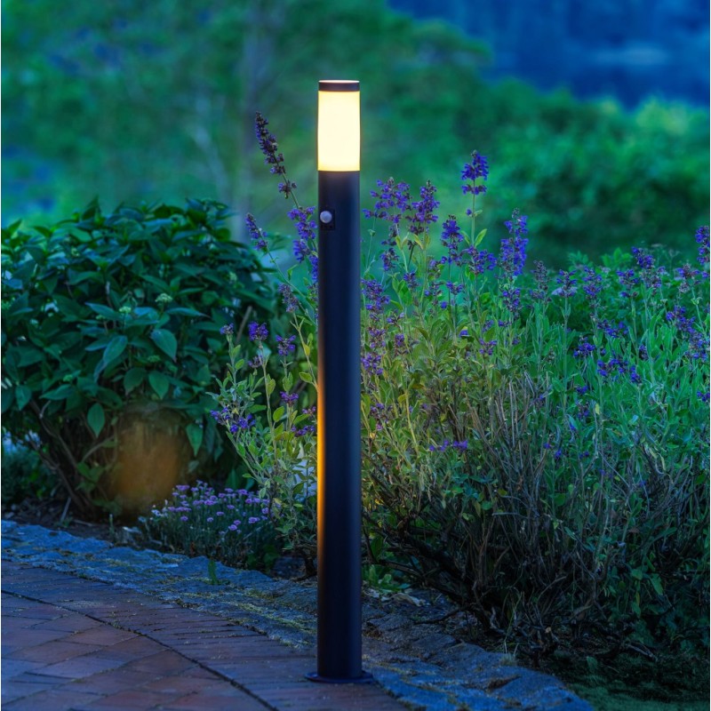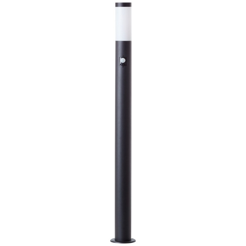 Moderní exteriérový nízký sloupek Brilliant, IP44, 1x E27, pohybové čidlo 90°, kov, tvrzený plast