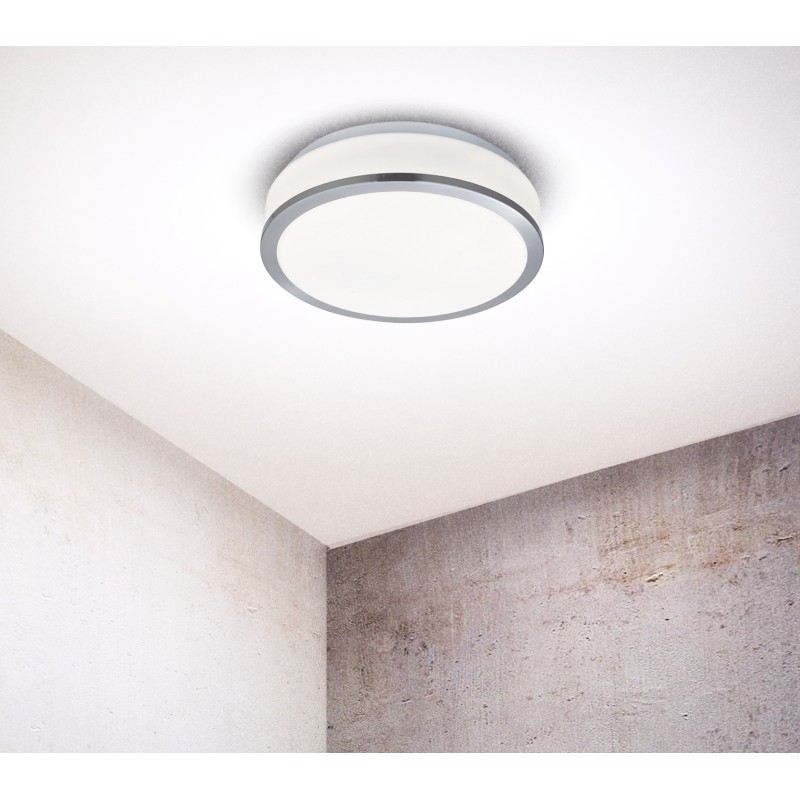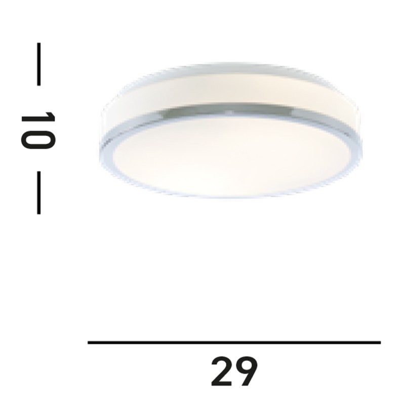 Stropní přisazené svítidlo do koupelny, 2x E27, opálové sklo, chromový lem, průměr 23cm