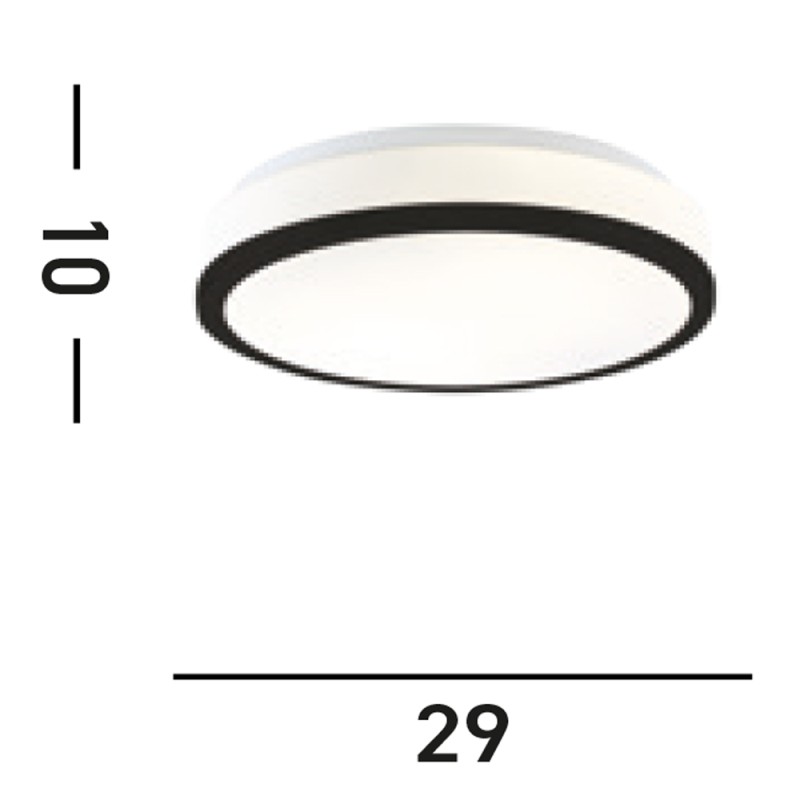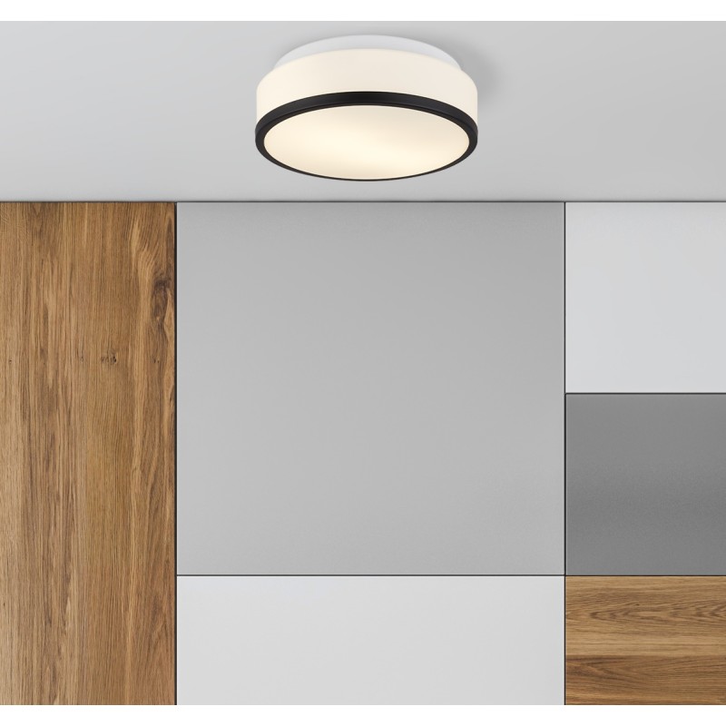 Stropní přisazené svítidlo do koupelny, 2x E27, opálové sklo, černý kovový lem, průměr 23cm