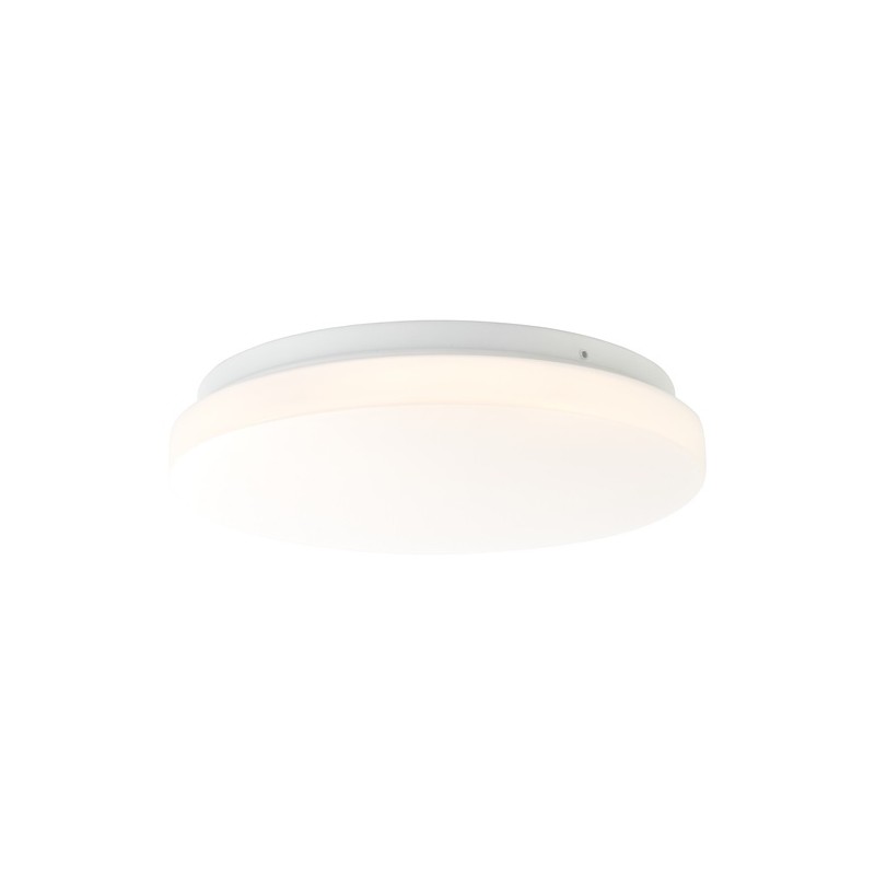 Kulatá kovová montura svítidla v bílé barvě je doplněna o bílý plastový difuzor, který optimálně nese světelný tok LED diod pod ním. Svítidlo je osazeno výkonnými integrovaným LED diodami energetické třídy E o celkovém příkonu pouhých 12W se světelnou účinností 1200 lumen. To odpovídá v přepočku cca 80W běžné žárovky. Svítidlo je tak vhodné pro osvětlení menších místností. Barva světla LED je denní bílá 3000K.