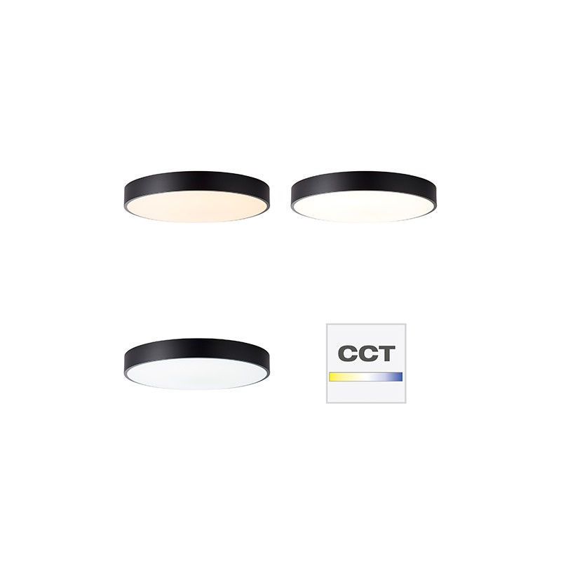 Kovová montura - široký lem svítidla v nadčasovém černém kulatém provedení a bílým difuzorem, který perfektně nese světelný tok LED diod uvnitř, dokonale splňují požadavky na dnešní jednoduchý a nadčasový design.