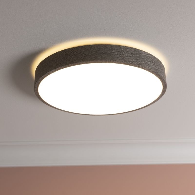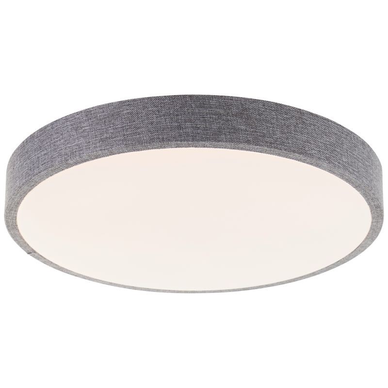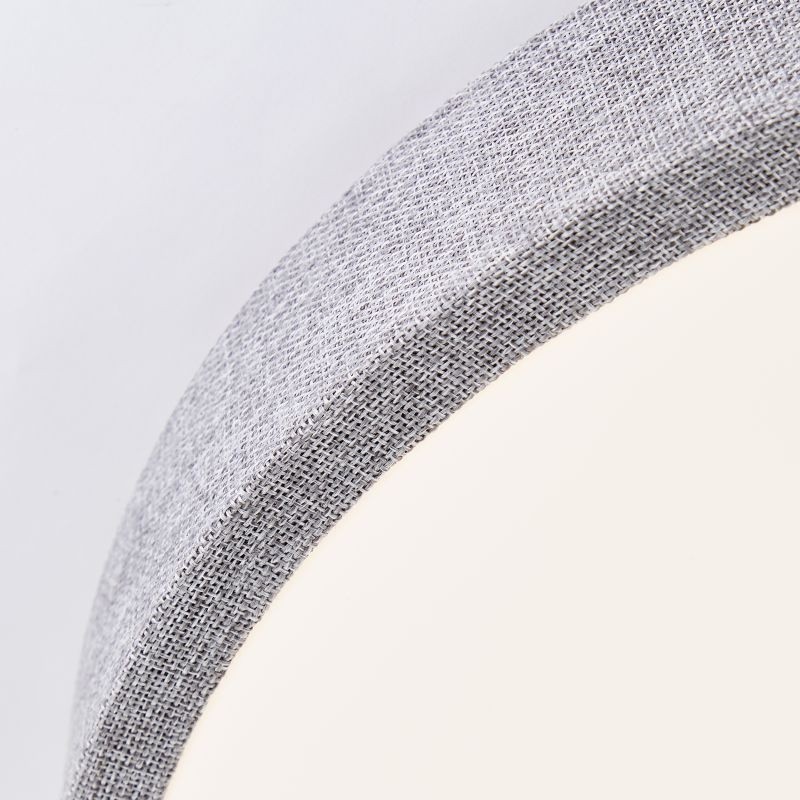 Široká kulatá montura svítidla z ušlechtilé textilie v moderním šedém odstínu v kombinaci s bílým difuzorem, který perfektně nese světelný tok LED diod uvnitř, dokonale splňují požadavky na dnešní jednoduchý a nadčasový design.