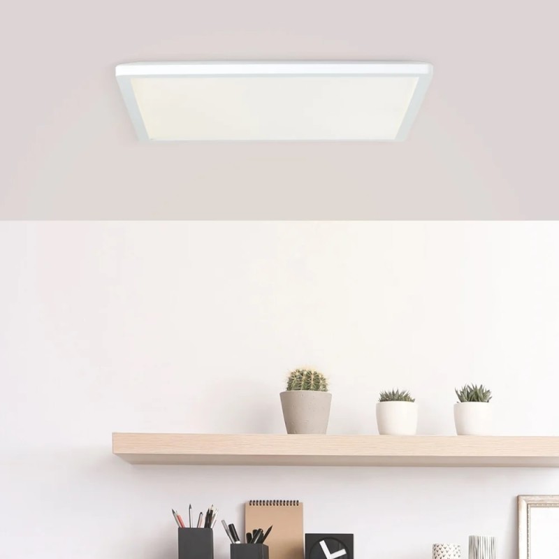 Minimalistické svítidlo zaujme svou štíhlou monturou, která je vyrobena z kvalitního bílého plastu, montura v klasickém rozměru 42 x 42cm je doplněna o bílý difuzor s kvalitní optikou a podáním barev. Svítidlo je osazeno výkonnými integrovaným LED diodami o celkovém příkonu 24W se světelnou účinností 3200 lumen, což odpovídá v přepočku 220W běžné žárovky. Barva světla LED je denní bílá 4000K.