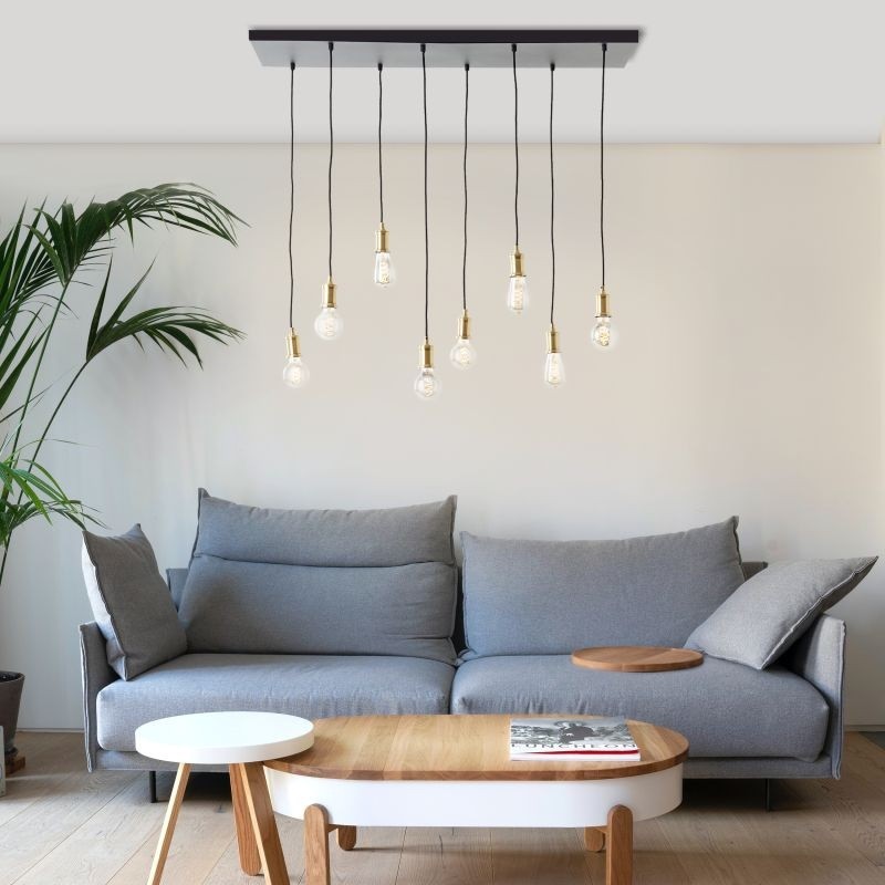 Moderní závěsné svítidlo DARCIA zaujme svým originálním provedením, kterému dominuje jednoduchost a vzdušnost. Kovové prvky jsou vyrobeny v atraktním matném odstínu černé, jsou doplněny o detaily ve zlaté barvě satinované mosazi, které představuji unikátní prvek tohoto svítidla. Jednotlivé zlaté okrasné patice jsou volně zavěšeny na černých textilních kabelech, jejichž závěsnou délku lze upravit dle potřeby.