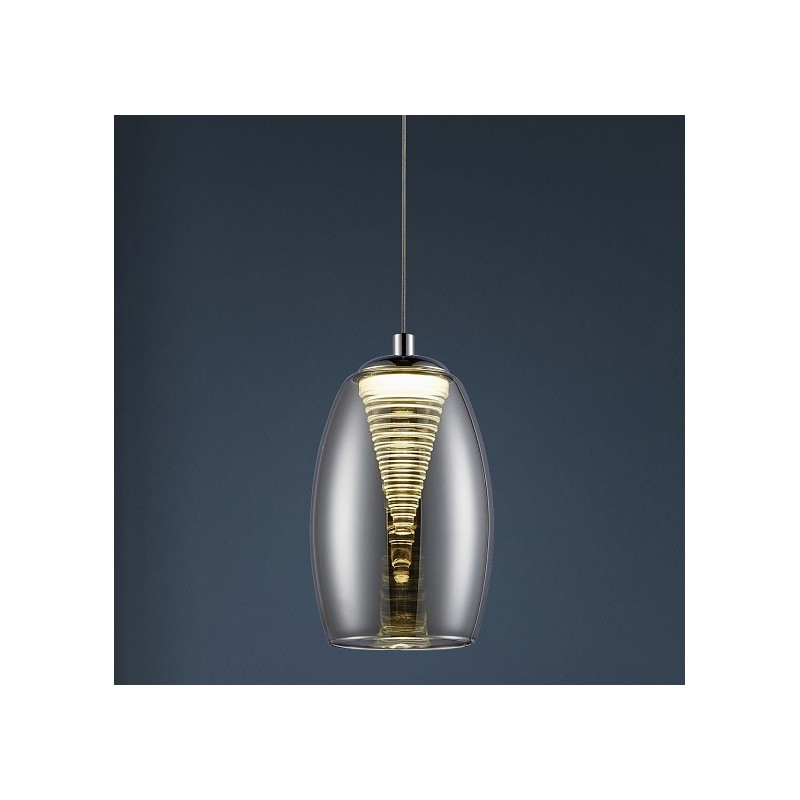 Jednoduché závěsné světlo Brilliant, čiré kouřové sklo s integrovanými LED, 540Lm, 3000K, lesklý chrom