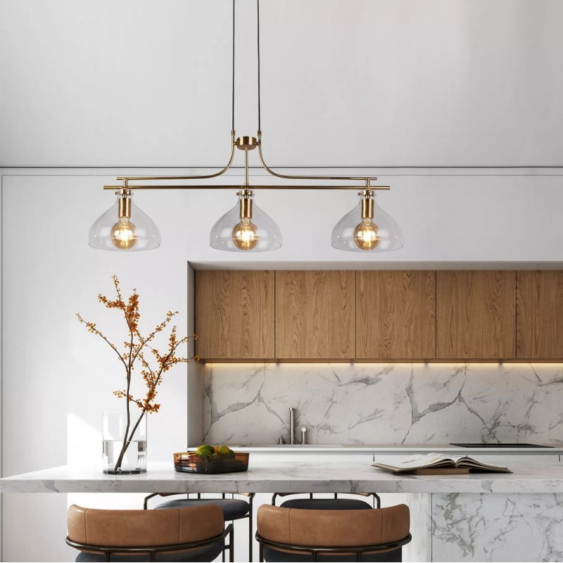 Trojité závěsné svítidlo MARGARITA mosaz, čiré sklo