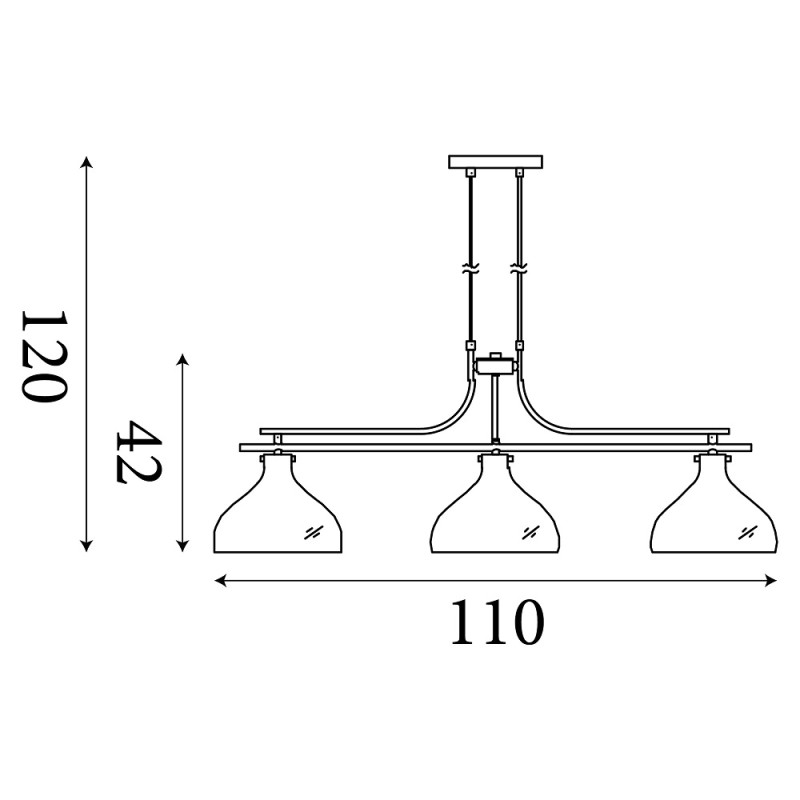 Jedinečná světelná rampa se 3-mi čirými stínidly o průměru 25cm ve vašem interiéru prostě nepřehlédnete Čirá stínidla jsou fixována na rampě sestávající ze 3 jemných tyčí z nichž vrchním dvěma dominují atraktivní oblé rohy v úhlu 90°. Celé světelné těleso je volně zavěšeno na 2 samonostných lankách v černé barvě, jejichž závěsnou délku lze upravit dle potřeby.