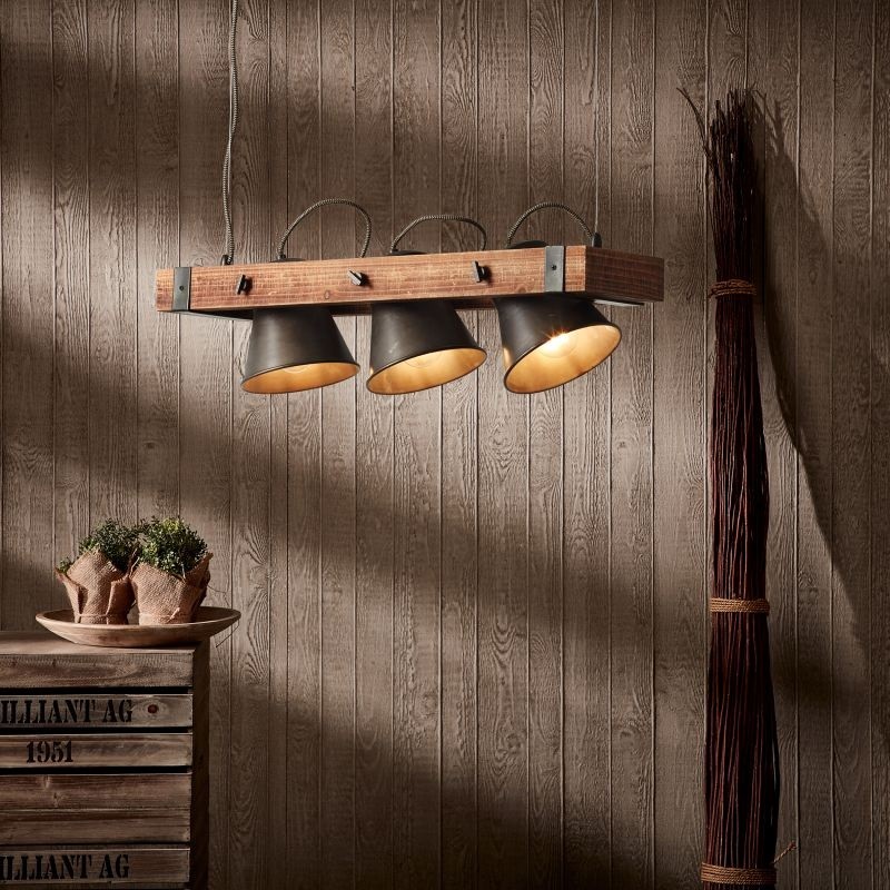 Závěsné svítidlo PLOW 3 černá ocel + DŘEVO