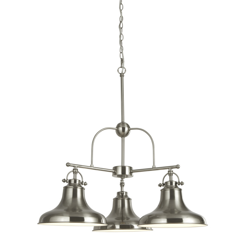 Stropní závěsné svítidlo DALLAS je ideální volbou pro osvětlení klasicky zařízeného i moderního interiéru. Svítidlo je vyrobeno z oceli v barvě satinovaný chrom. Tělo svítidla, které tvoří 3 samostatná ramena se stínidly o průměru 26cm a je zavěšeno na kovovém řetězu, jehož celkovou maximální délku lze upravit dle potřeby.